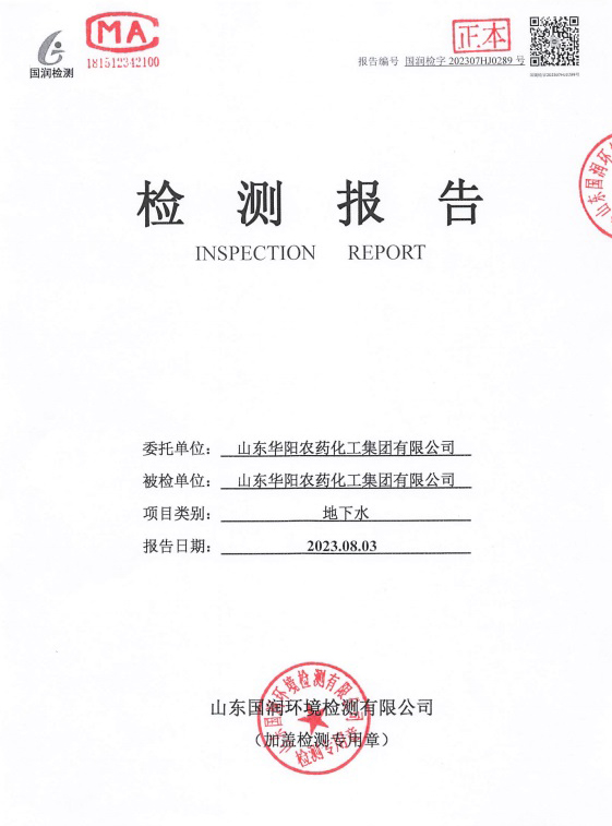 山東華陽農(nóng)藥化工集團(tuán)有限公司地下水檢測報告